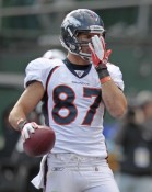 Denver Broncos Eric Decker blows a kiss to Oakland Raiders fans after scoring on a 27-yard reception against the Oakland Raiders in the NFL game at O.com Coliseum in Oakland,Ca.
